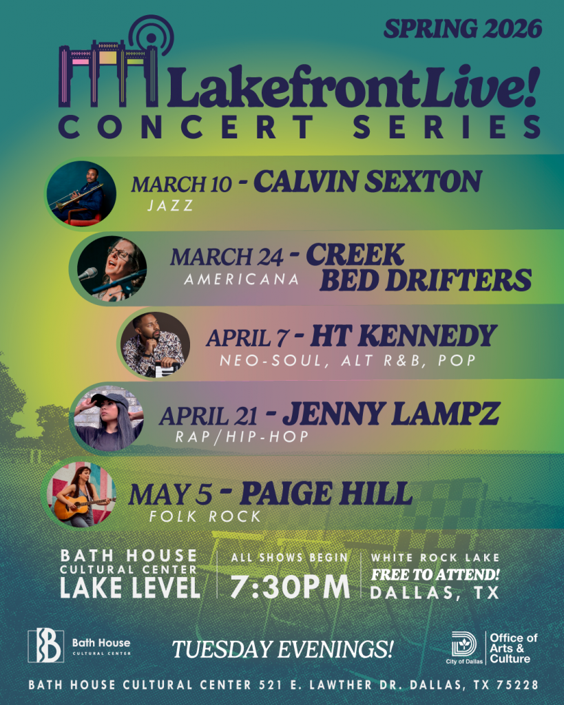 Join us at the Lake Level stage, our unique semi-enclosed, indoor-outdoor performance space. You can sit up close or picnic on the lawn and enjoy the incredible sunsets and city skyline at White Rock Lake. We have some seating available, but please feel free to bring your chairs and blankets!
