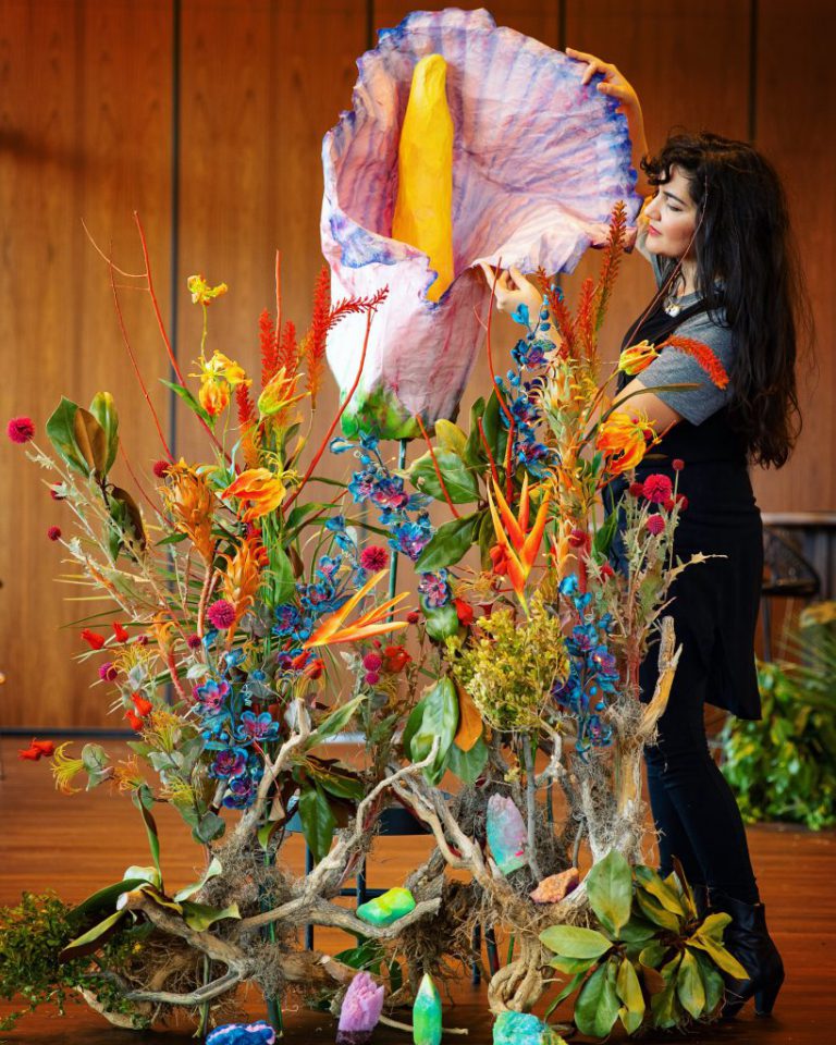 Shamsy Roomiani is a native Texas visual artist who relishes her time spent outdoors amongst the natural world. She received a BFA degree in Printmaking and a BA degree in Marketing from The University of North Texas. Known for her ethereal botanical and nature inspired work in installation art, printmaking, sculpture, photography, painting, and drawing, she has been deemed Dallas’ “mystical plant artist” by PaperCity Magazine. Shamsy creates botanical installations, conducts workshops, and is a visiting artist and educator for museums and institutions in DFW.